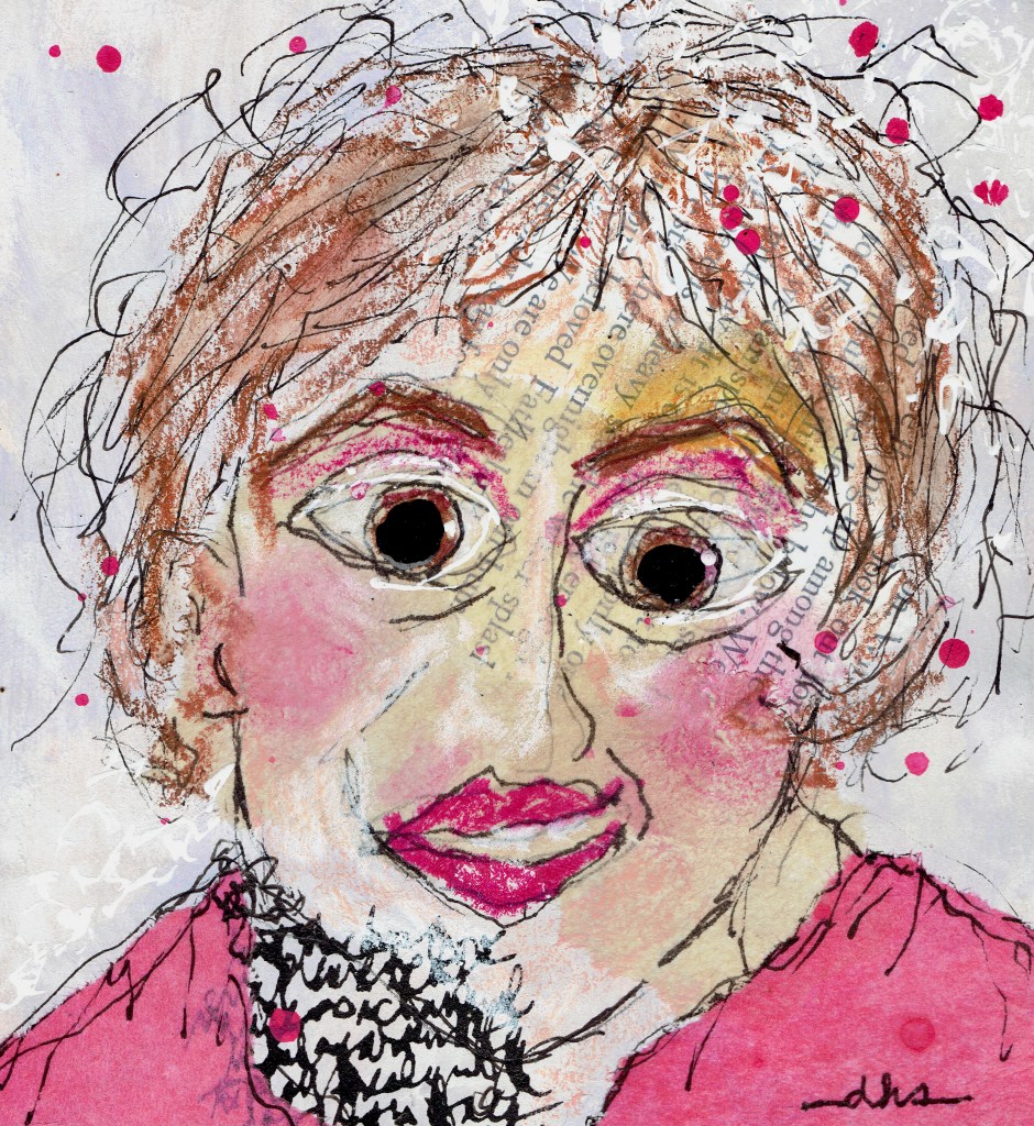 4.25 x 4.5″; acrylic, ink, watercolor pencil, water-soluble pastel,