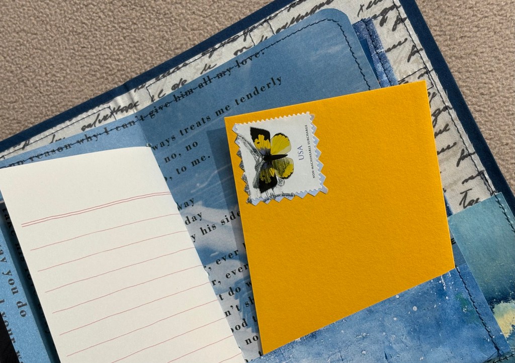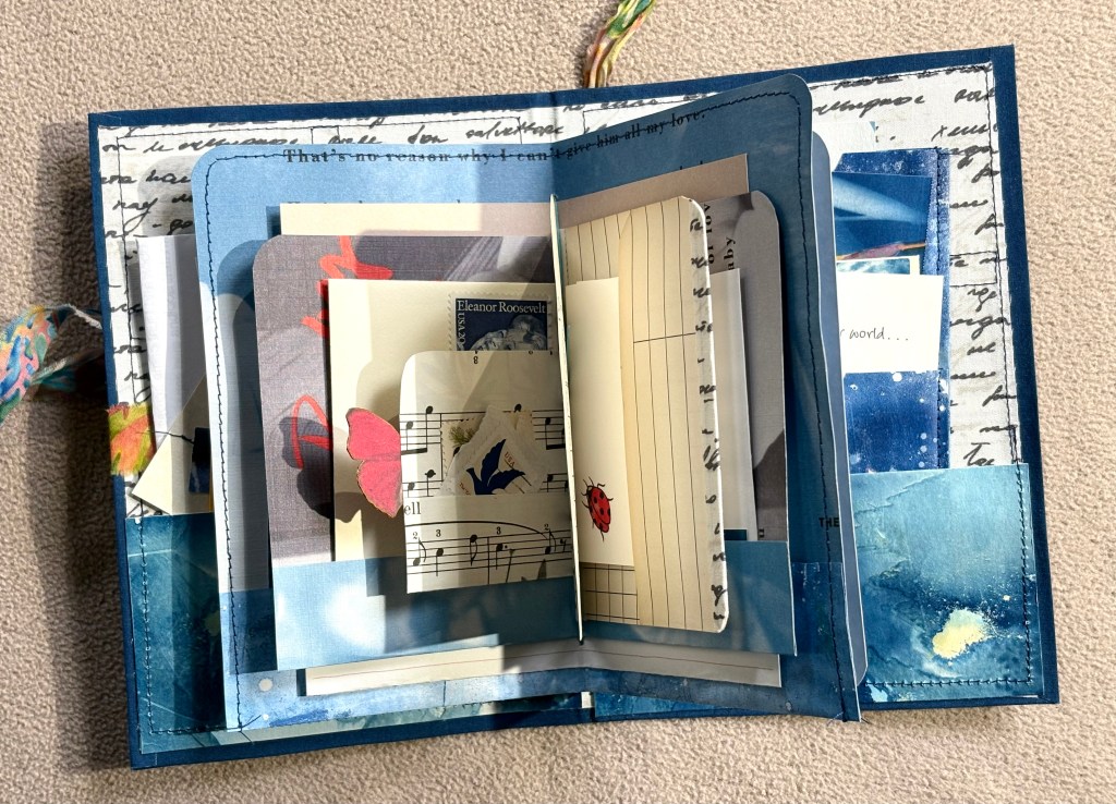 Yes, please, MaryAnn, I’d love a Joy Journal. Please use papers from your vast collection, please include cyanotype prints in the mix, please give me pockets I could fill with my own poems and art.