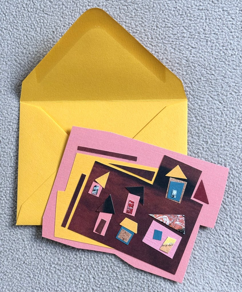 What a wonderful surprise to see your little Joy Journal in your post this morning! I absolutely loved making it. I had no idea that quirky little No Need to Knock house collage was that tiny…and the fact that it fit in that perfectly coordinated tiny envelope fills my heart with joy. Serendipity….indeed!